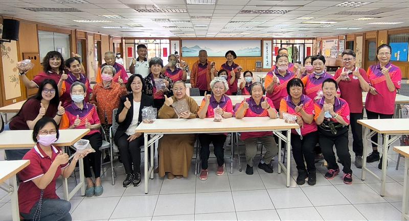 【記者黃婉柔/屏東報導】 屏東佛光講堂紅十字關懷據點近日洋溢著陣陣花生香氣與歡笑聲,「將軍夫人」王德宇特別以志工身