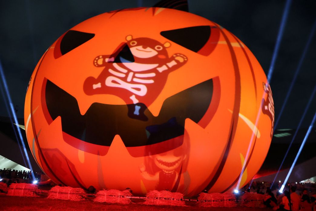 「2025高雄萬聖節」於10月31日至11月2日登場,今天(31日)晚上22公尺巨型南瓜燈光秀在衛武營戶外廣場正式啟動;今年首次展演360度全景燈光秀,隨著音樂律動閃耀變換色彩,光影交織出萬聖節奇幻絢麗氛圍,吸引眾多民眾駐足驚呼。# p1