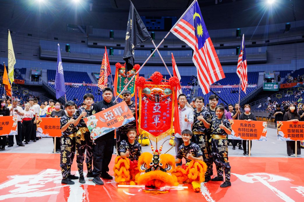 「2025高雄戲獅甲」經過二日「水上跳、空中躍」的水陸纏鬥,今(16)日於高雄巨蛋體育館,高雄市政府秘書長郭添貴現場為獅隊加油,並頒發冠軍錦旗給馬來西亞布特拉再也光藝醒獅團,活動在眾人的熱情加油聲中圓滿結束!
